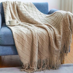Manta de siesta de oficina de uso en las cuatro estaciones súper suave de alto lujo Manta de sofá de punto con borla suave manta de alta calidad